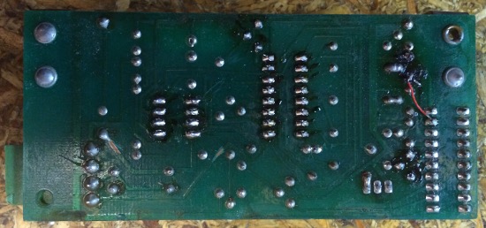 Unique to Locomotion, this board is mounted under the playfield and is used to implement a "chase lamp" effect for 8 lamps underneath the vacuum formed plastic in the middle of the playfield. The game can turn the chase feature on or off, and can set it to "slow" or "fast" speed for the lamps.