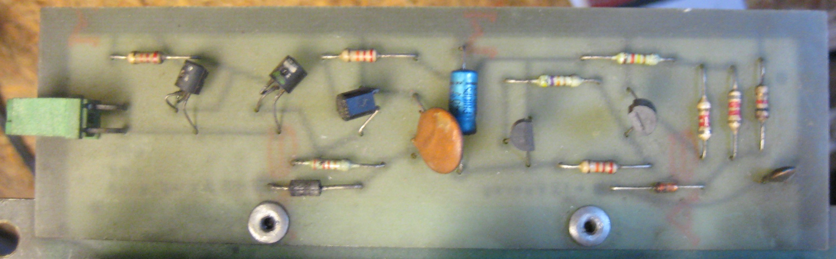 Probably used early in the Star God run. May also have been used in some Space Shuttles. This modification to the 1B11109/3 board adds the 1B1134 "power down" circuit by having it pop-riveted to the top of the board and tied in to the +12V and +5V at RG1 with wires soldered to the back of the board. I assume that they were using up a supply of 1B11109/3 boards before starting to use the 1B11109/4.