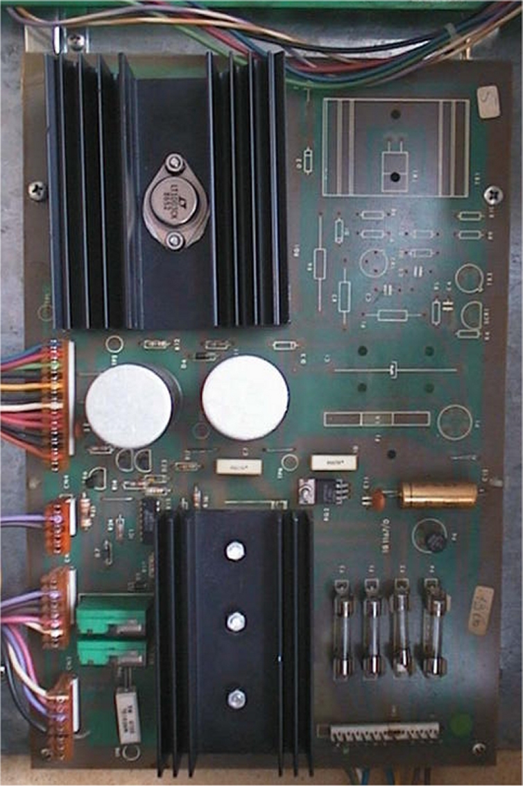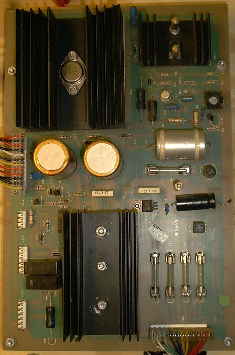 There are three bridge rectifiers mounted under the large heat sink in the middle of the power supply board. If one of them fails, you should replace all three of them while you already have the board out and are working on it. Two of the three are lug-type bridges and require a soldering iron that can deliver enough heat to work a large joint. Don't try this with a 15W Radio Shack soldering pencil!