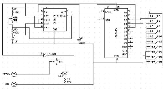 Rather than having individual toggle switches, this one just continuously cycles through the three address pins and ties all of the chip select pins Low so as to continuously toggle all output pins of the Driver board for easy testing with a logic probe.