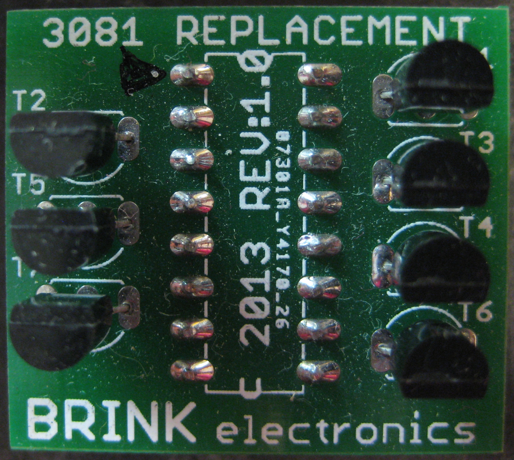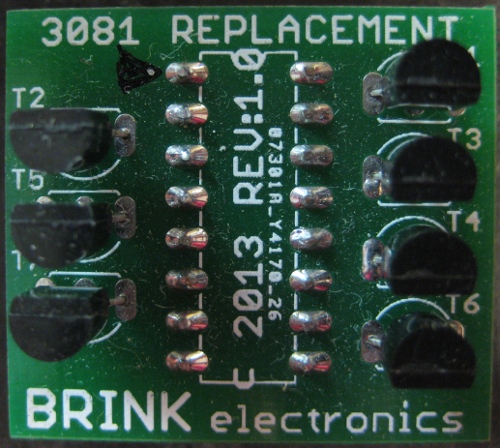 BRINK electronics has released a replacement for the CA3081 transistor array used on many pinball machines from several manufacturers. CA3081s are not yet completely unavailable, but they are long obsolete and the supplies of them are drying up, so it is only a matter of time before products like this are the only way to repair games that use these chips.