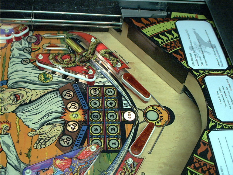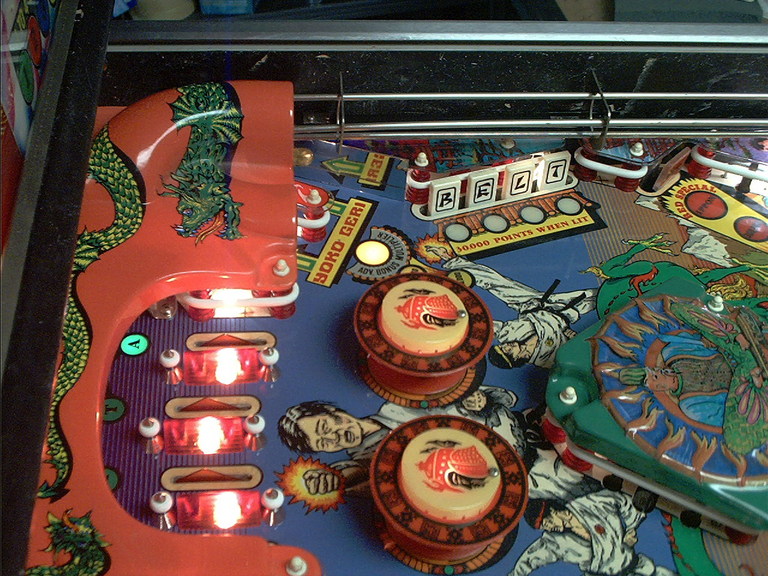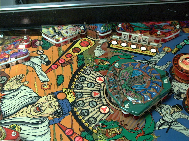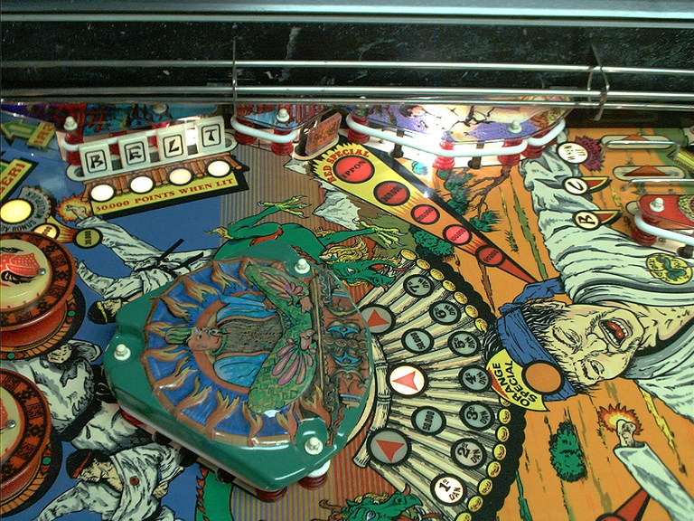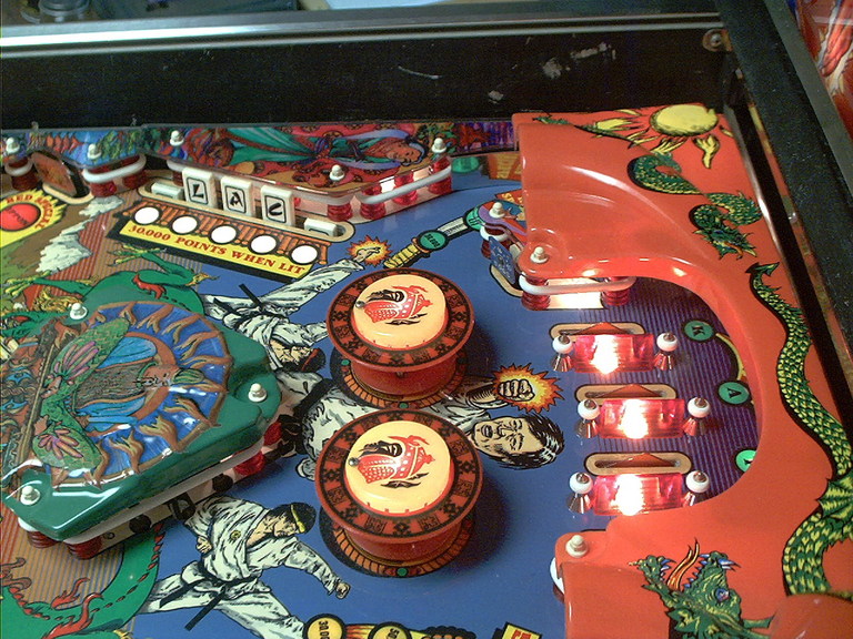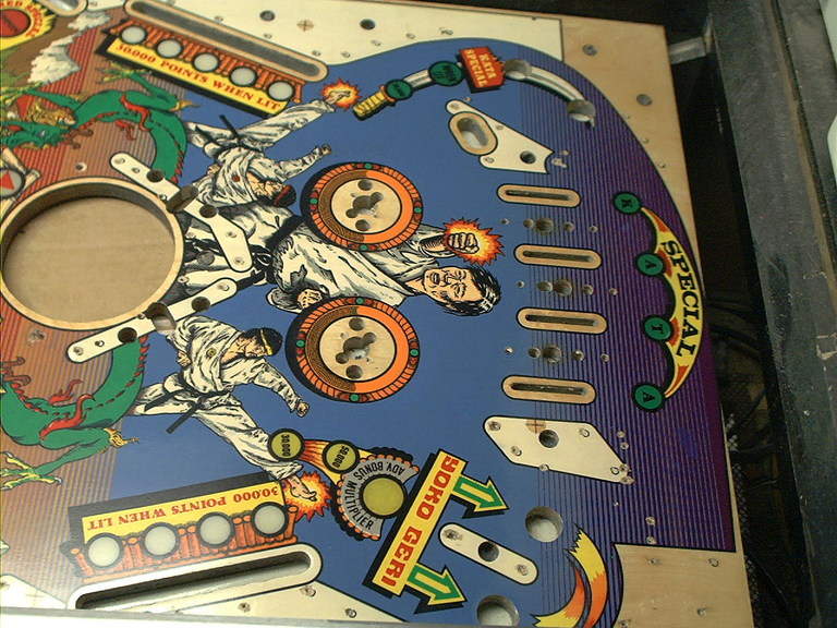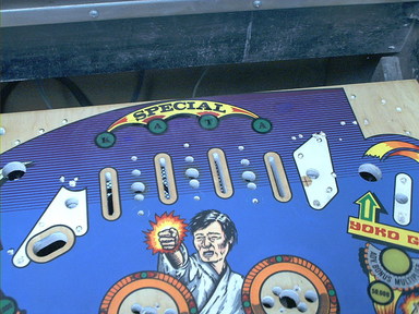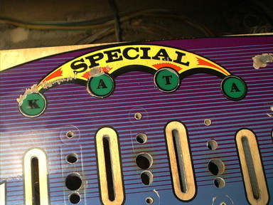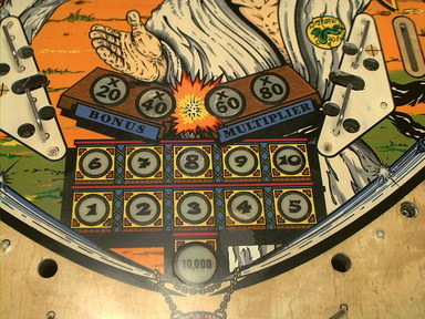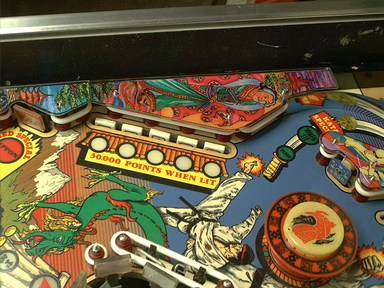 | Playfield Detail: Repaired and touched up bonus inserts |
