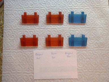 On the left are two of the original guides. The third has one of the mounting posts broken completely off. These two are complete, but both show cracks in the plastic. Two of the reproductions are in the middle. And there are two good ones from a Soccer Kings on the right. The closeup shows what the reproduced guide looks like by itself.
