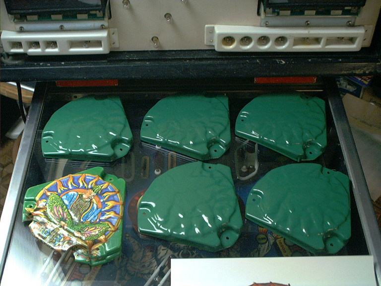 Having already reproduced the red translucent flipper bats and caps, and having the required flipper shafts made, those ugly generic white flipper bats were easily replaced by correct repro pieces.